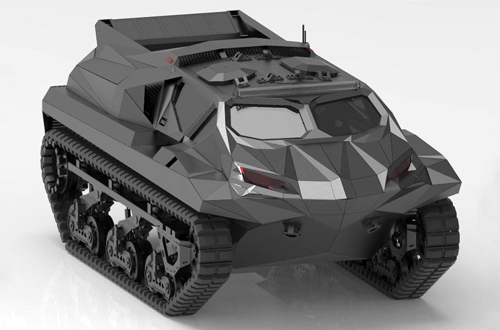 Бронированная амфибия оснащена двумя основными электродвигателями суммарной мощностью 590 л.с. Дополнительный электромотор мощностью 200 л.с. нужен для движения по воде. Подзаряжать аккумуляторы можно с помощью дизельного генератора. В гибридном режиме вездеход может двигаться 18–36 часов, на электротяге — 1,5–3,5 часа.