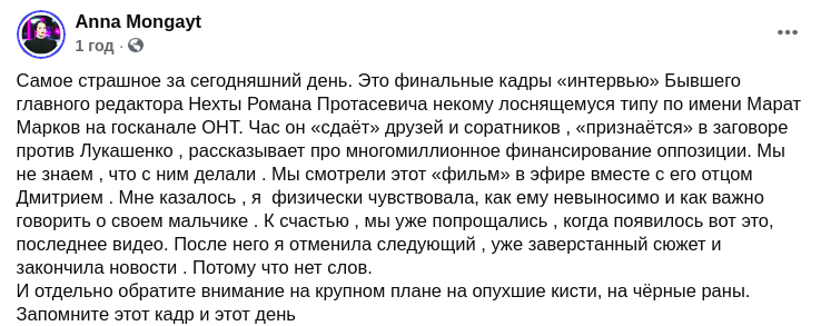 По его словам, интервью Протасевича было похоже на допрос, в ходе которого он не сказал ничего, что соответствовало бы действительности. Журналист убежден, что на его бывшего коллегу давили не только физически, но и психологически, убеждая в том, что окружение полностью предало его.