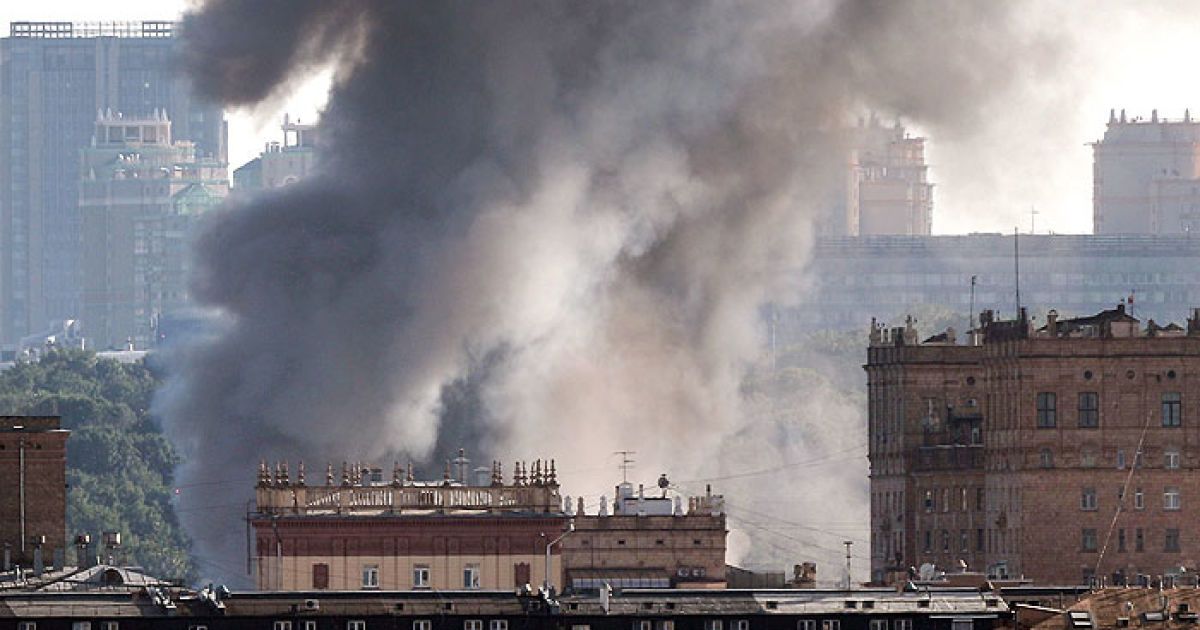 На Лужнецкой набережной в центре Москвы — пожар и взрывы.