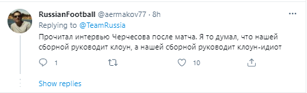 Под раздачу попали как футболисты, так и главный тренер национальной команды. Фанаты назвали выступление сборной РФ на чемпионате позорным и бездарным, призвали Черчесова покинуть свой пост и возмутились из-за зарплат, которые получают игроки.