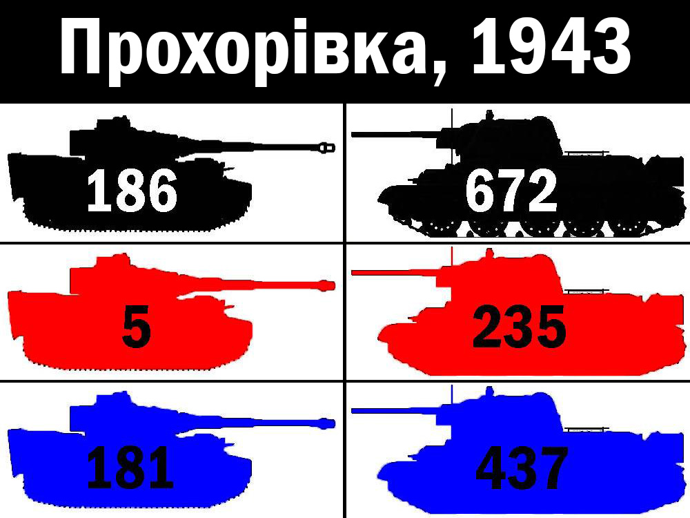 ПС Возможно тут не очевидно. Черное – общее количество, красное – потери, синее – осталось целым. Слева – Вермахт, справа – РККА