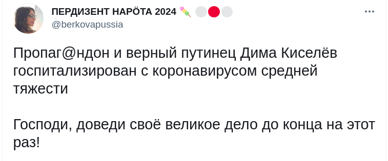 Топ-пропагандист Владимира Путина, который ведет телепрограмму “Вести недели” на государственном телеканале “Россия-1”, Дмитрий Киселев попал в больницу с COVID-19.