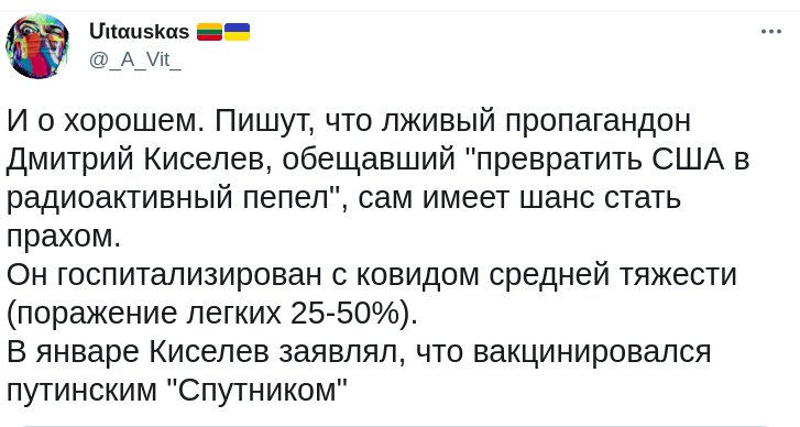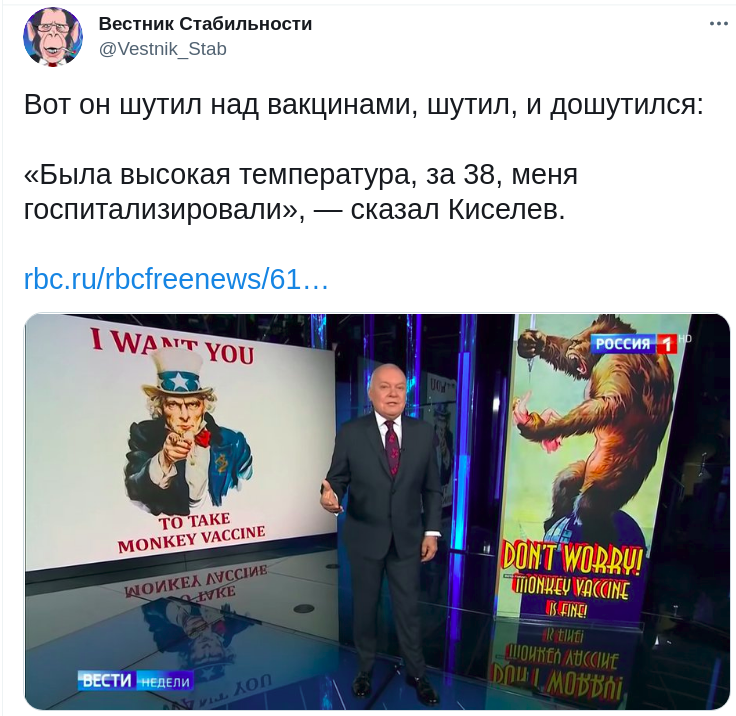 "Вот он шутил над вакцинами и дошутился...", — написал комментатор под ником "Вестник Стабильности".