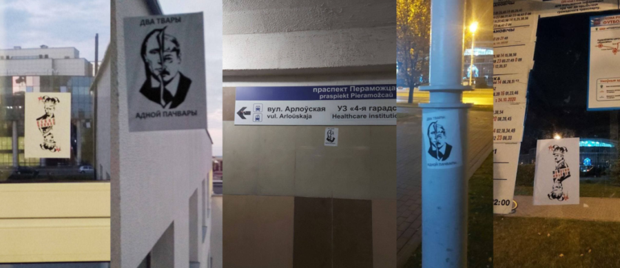 ROBIM.LIVE сообщает, что сразу в нескольких районах Минска на столбах, стенах и остановках появились новые наклейки "Два твары адной пачвары" и "ЛуПутин" с изображениями Путина и Лукашенко.