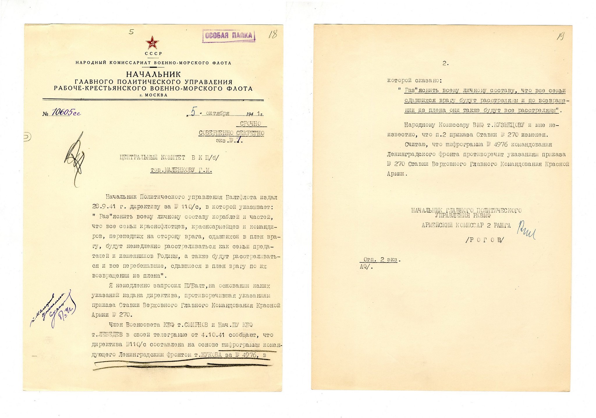 "Разъяснить всему личному составу, что все семьи сдавшихся в плен будут расстреляны и по возвращению из плена будут также все расстреляны " — Жуков