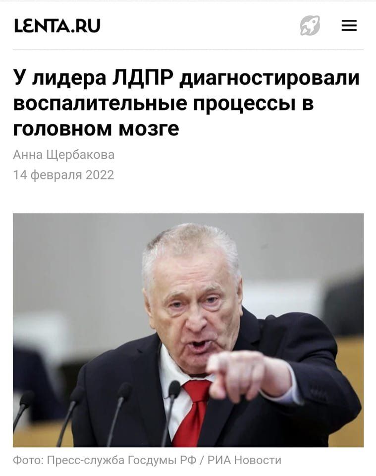 У Жириновского заподозрили инфекцию мозга. Скажу честно, я её у Жириновского лет 30 тому назад заподозрил - пишут в комментариях.