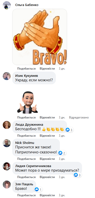 "Приснится же такое! Патриотично-сказочно!", "Может пора о мире призадуматься?", "Коленьки Лукашенко не хватает для полного комплекта", – пишут комментаторы.