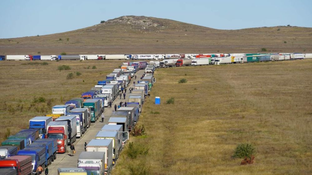 После взрыва на Крымском мосту в Керчи образовалась огромная очередь из грузовиков, которая уже видна даже из космоса. Видео публикует Telegram-канал Baza. Видео якобы сняли на территории аэропорта Войково.