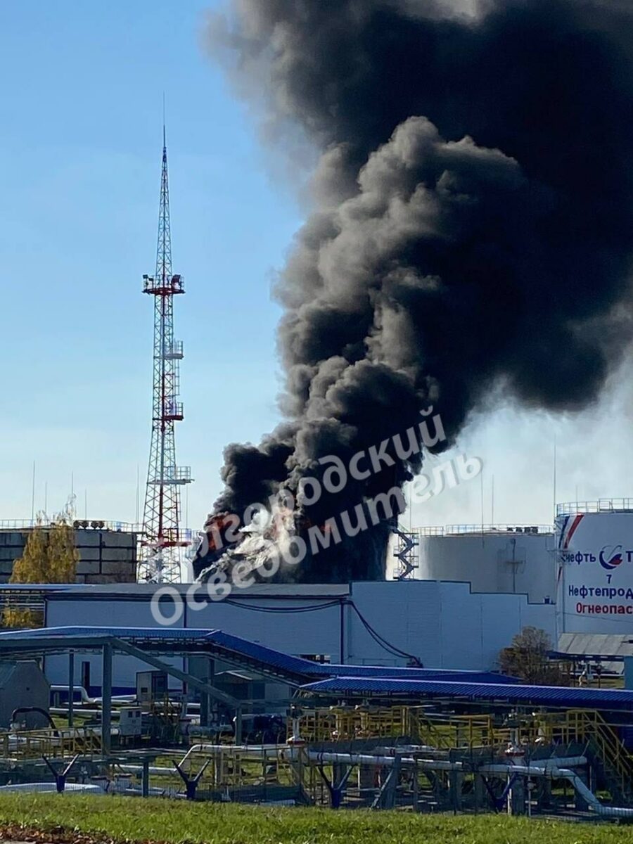 Как пишут российские пропагандистские СМИ, на белгородской нефтебазе поврежден один из десяти резервуаров.