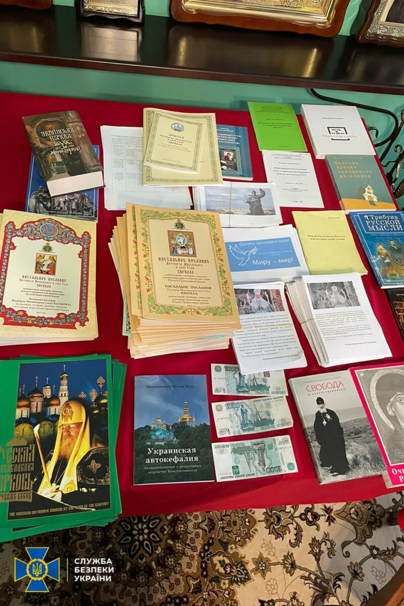 Среди прочего силовики обнаружили пророссийскую литературу, которая используется во время обучения в семинарии и приходских школах, в том числе для пропаганды «русского мира».