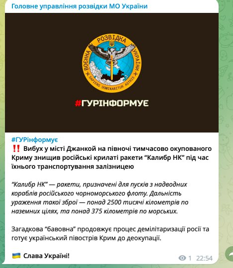 Взрыв в Джанкое уничтожил российские крылатые ракеты "Калибр НК" во время их транспортировки по железной дороге, — ГУР