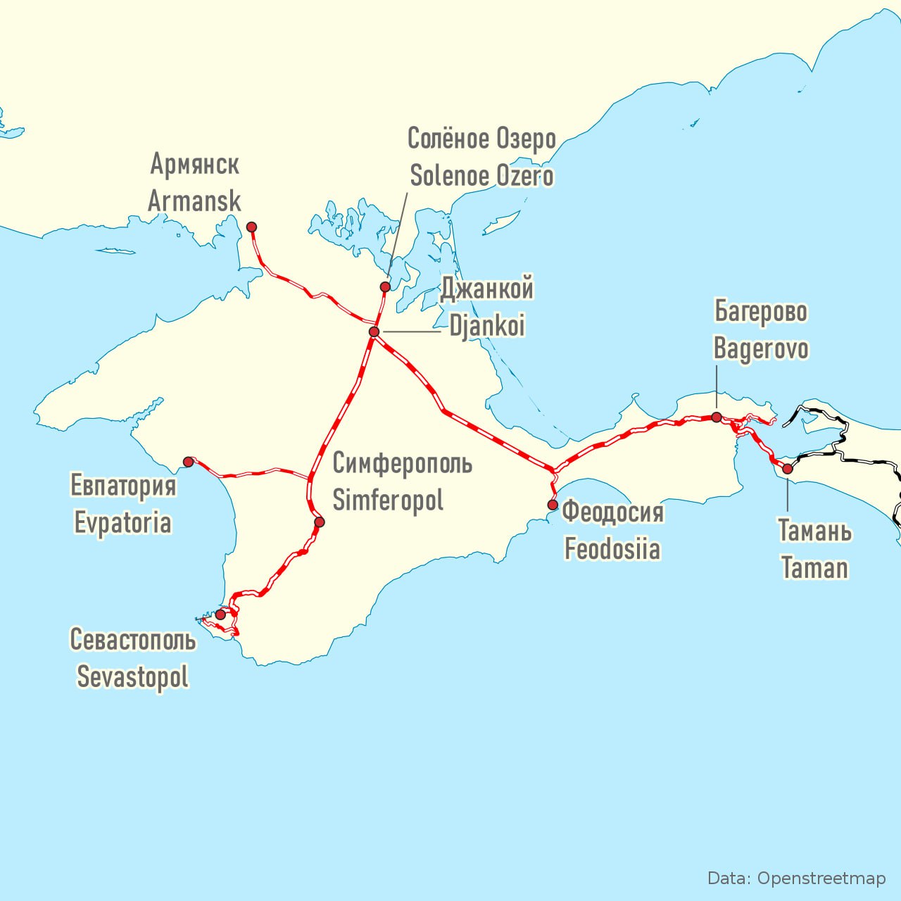 Для тех, кто не верит ГУР и спрашивает, как Калибры оказались в Джанкое, посмотрите на карту ж/д-сообщения в Крыму